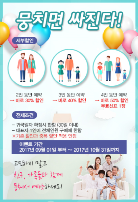 - 당일 발권의 경우 이벤트 적용 불가, 사전 예약시 이벤트 적용대상 여부 확인
